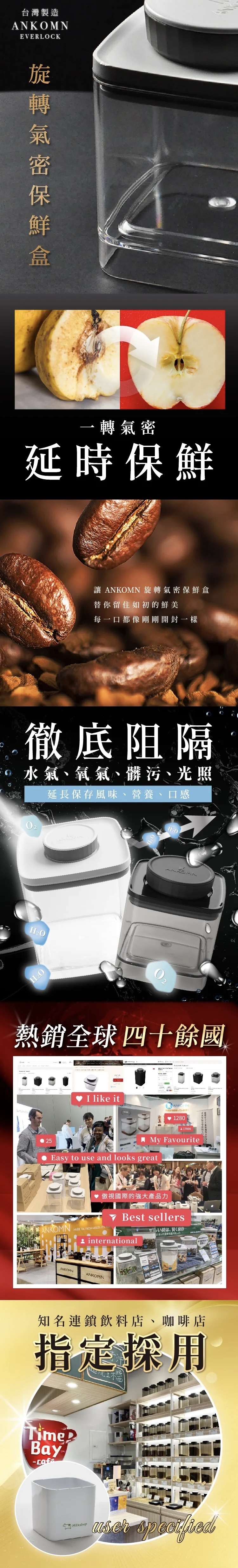 ✨ANKOMN氣密罐,達到滴水不漏的嚴謹標準!源自台灣的設計與工藝,除了能夠防止外來髒污、蟲蟲進入保鮮罐的內部之外,在台灣潮濕的環境徹底阻隔水氣、氧氣、髒污、光照。✨