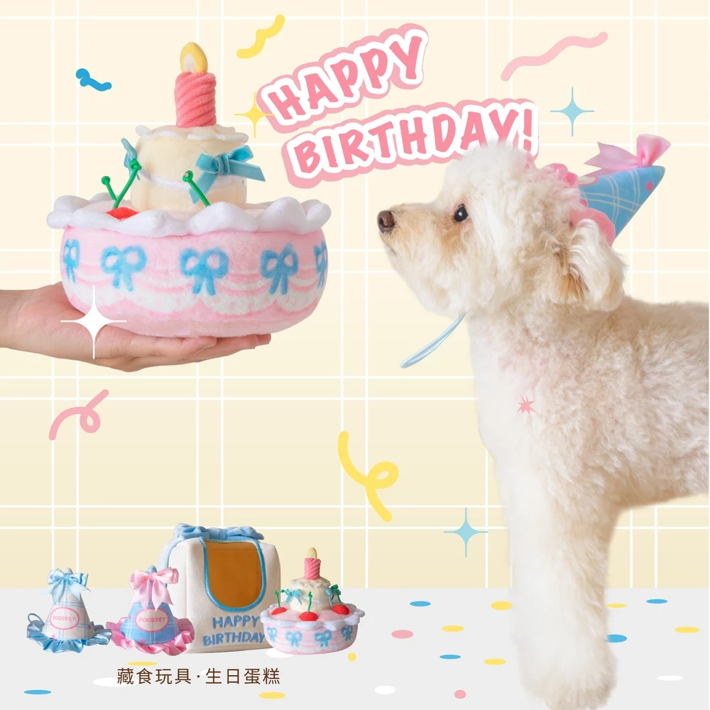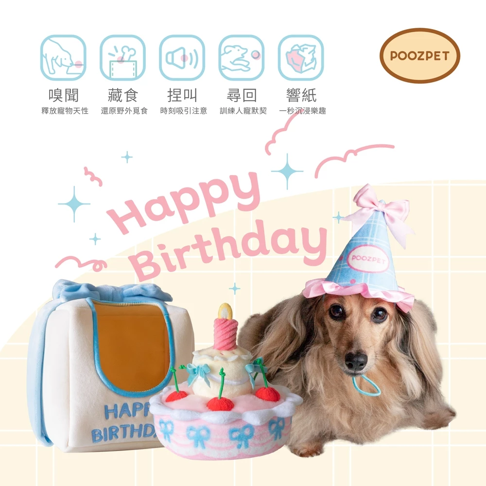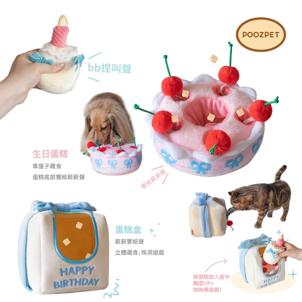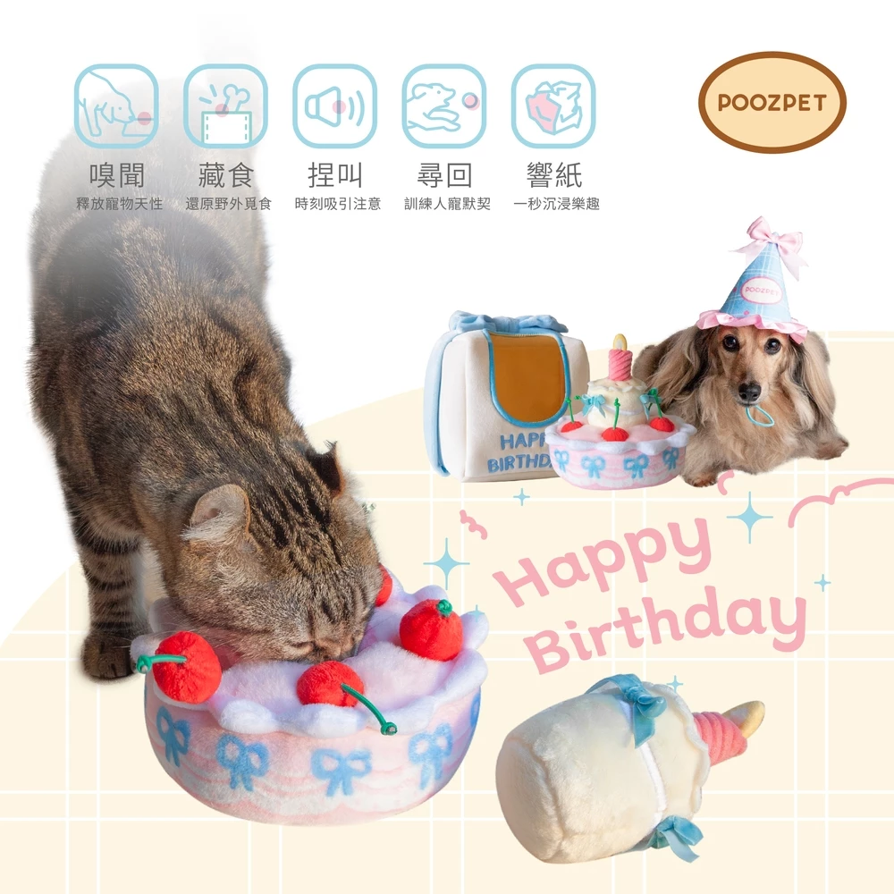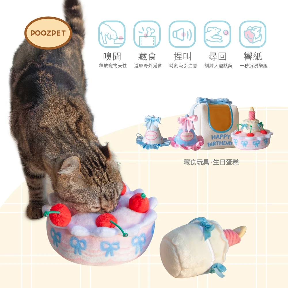 POOZPET 專為小壽星打造的「生日蛋糕組」,結合了超萌拍照配件與動腦藏食功能。