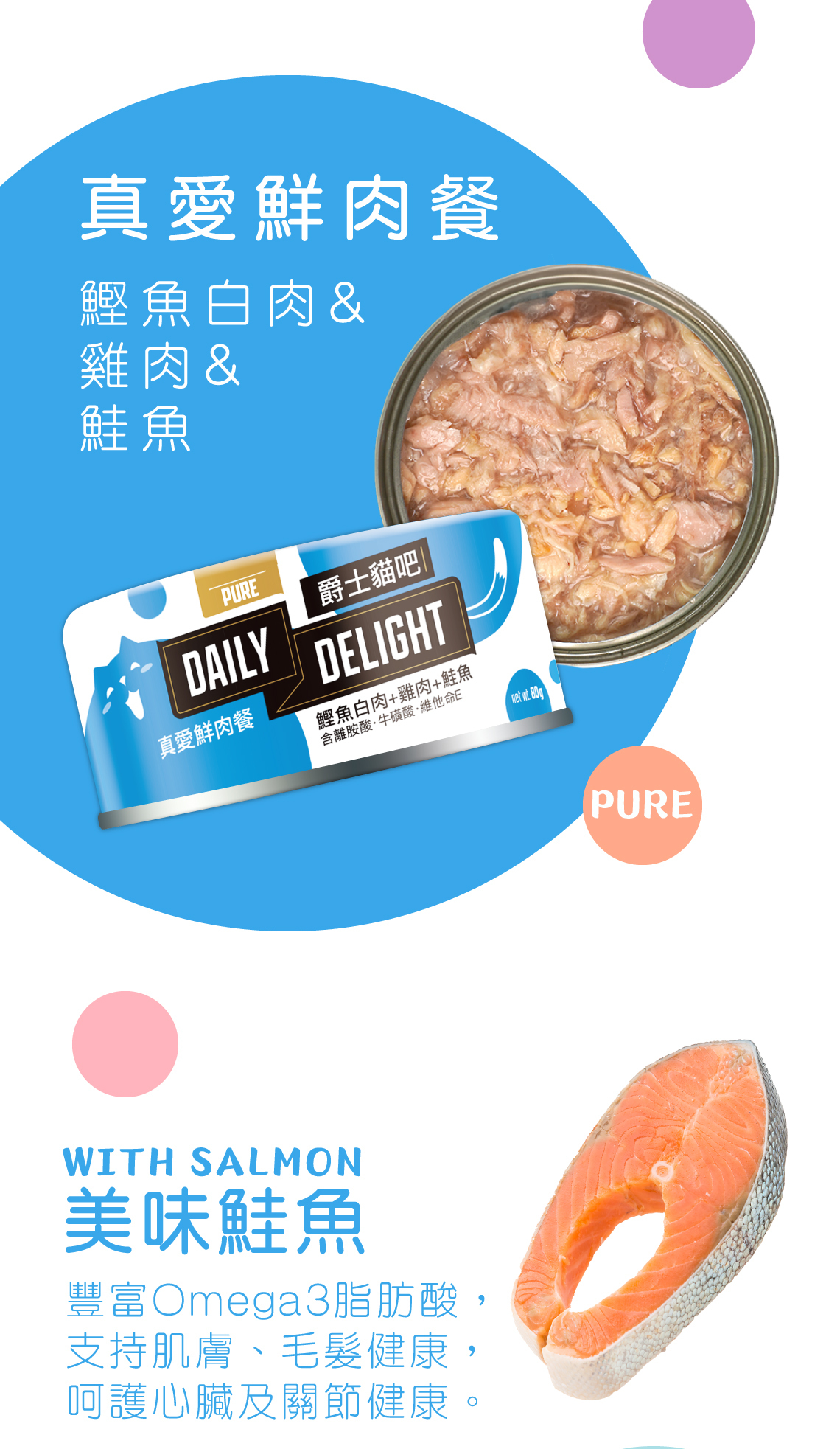 【爵士貓吧 Daily Delight】真愛鮮肉餐主食貓罐(新包裝) 80g (多種口味) 24入