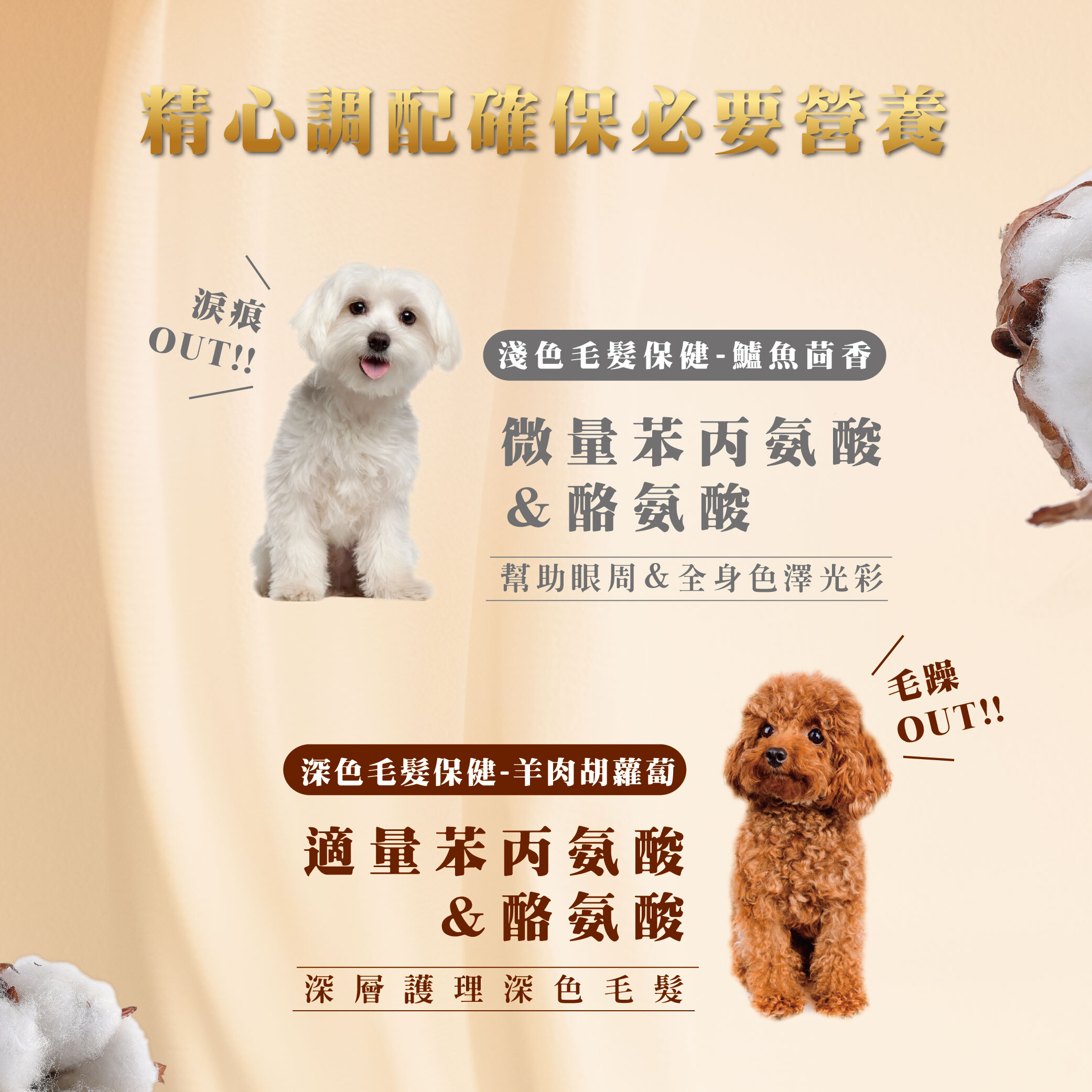 ✓白毛眼周亮澤,鱸魚茴香口味,滿足全齡狗狗的需求。
