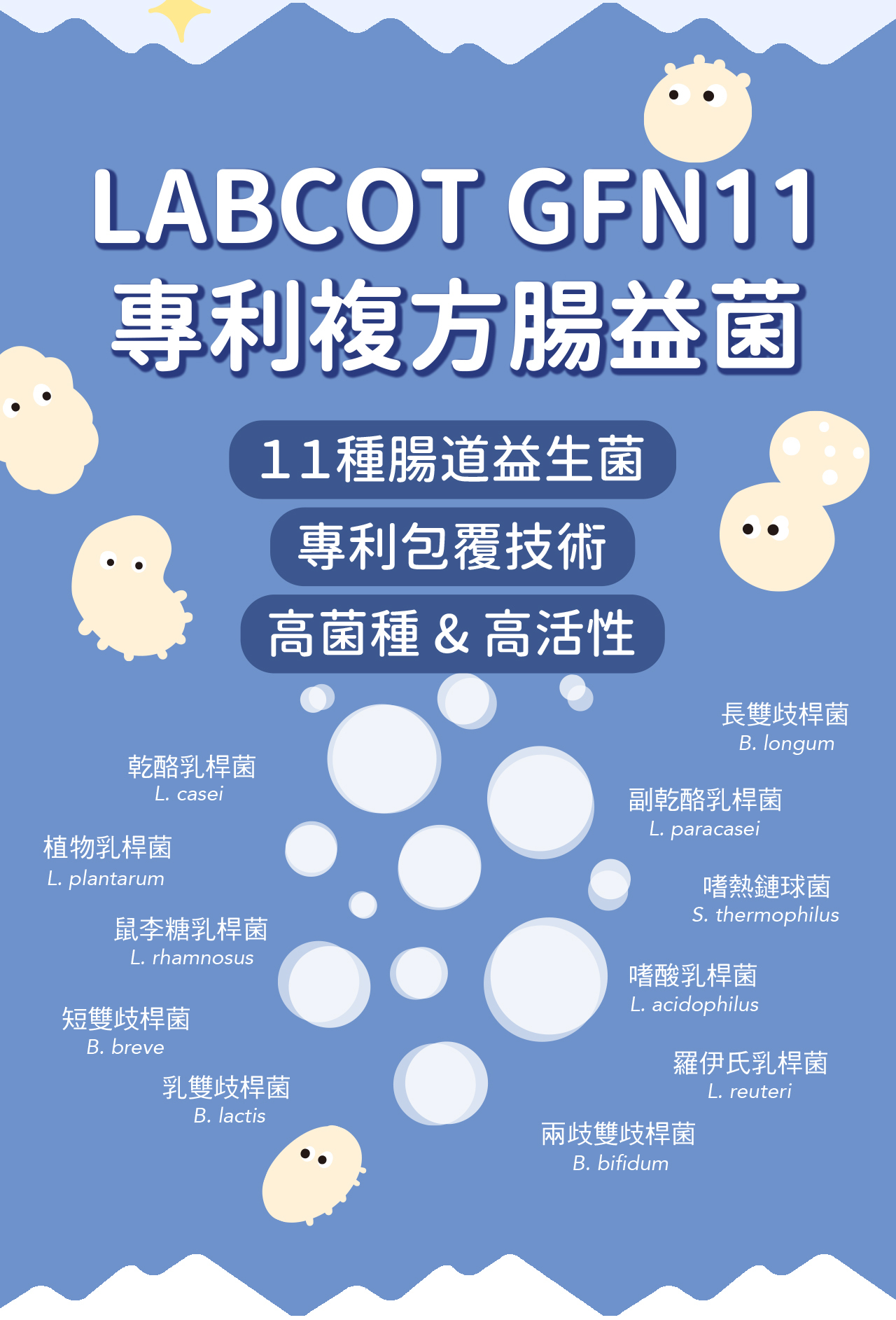 • LABCOT GFN11專利綜合腸益菌:多元補充,維持腸內菌叢平衡
