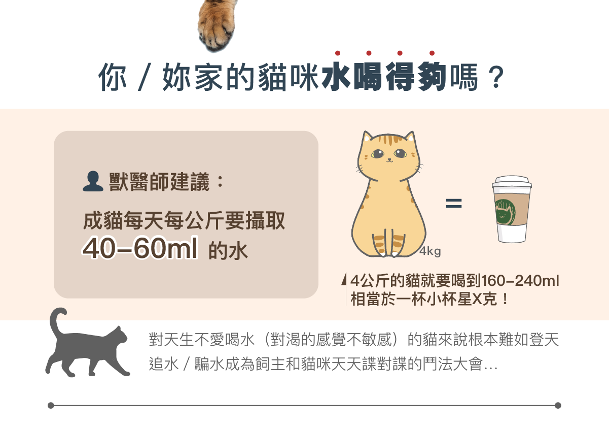 對於腎功能受限的貓來說,攝取足夠的水分以支持腎功能是非常重要的。