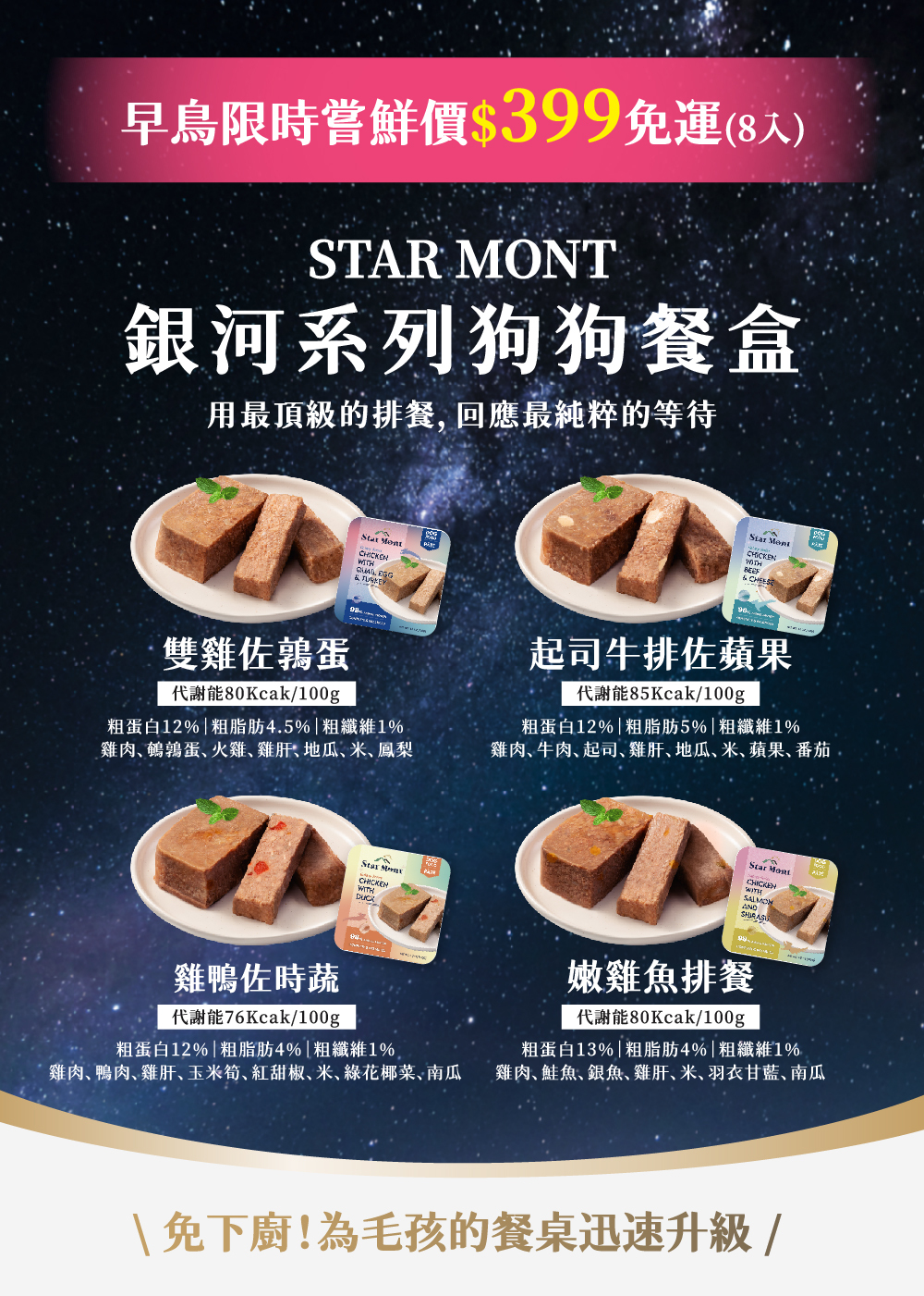 \ 4種口味無膠狗主食餐盒 /