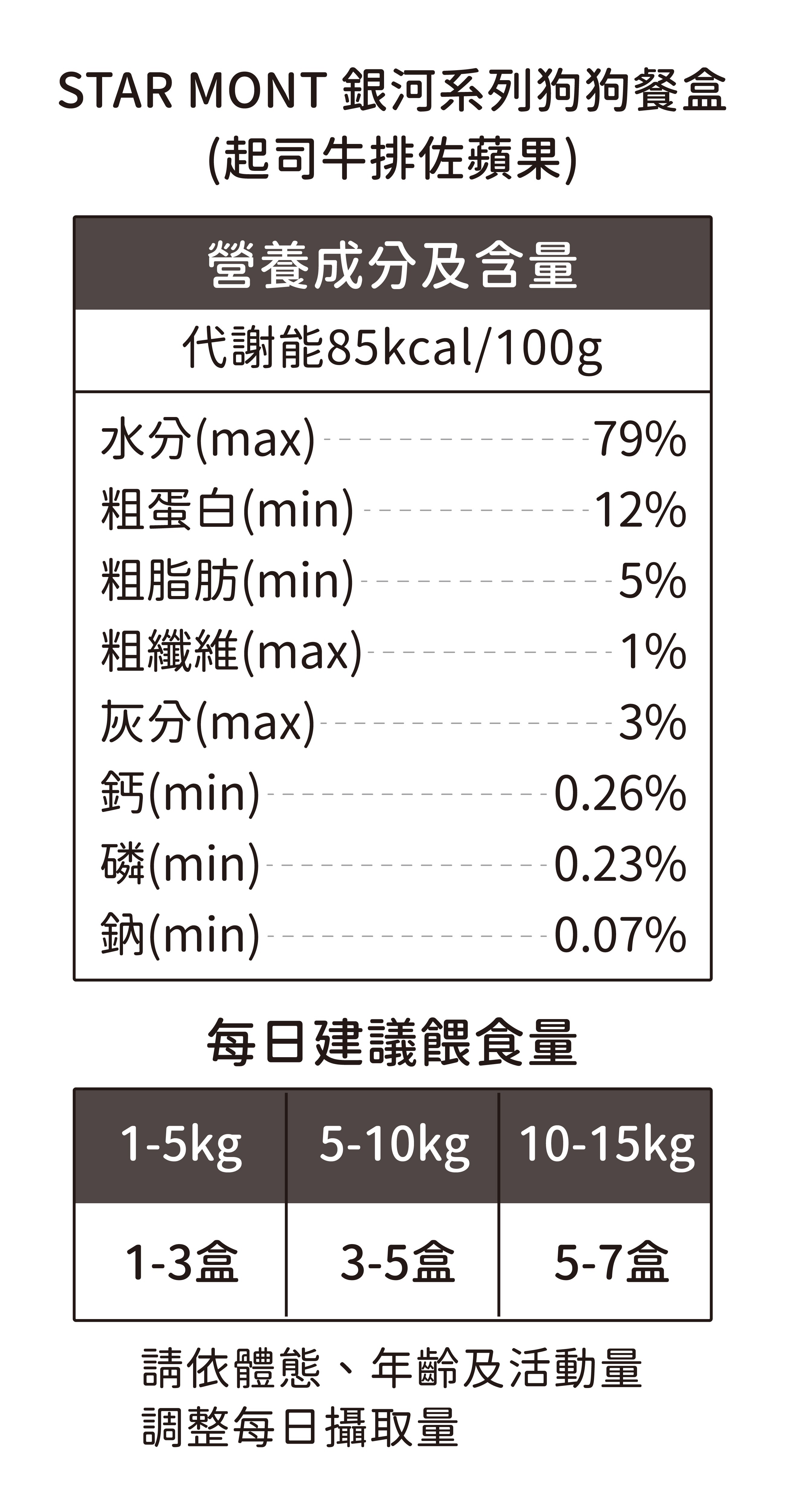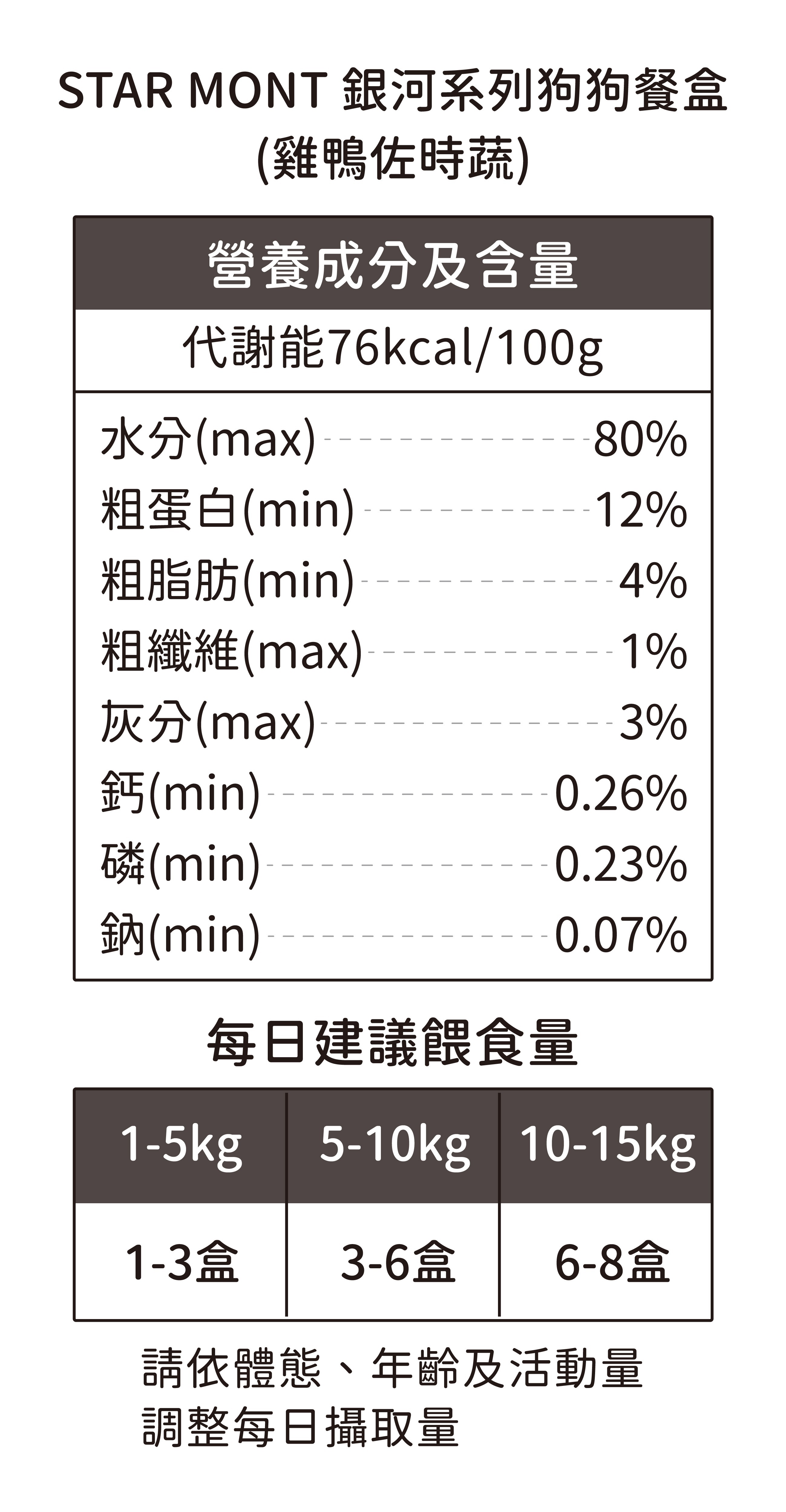 請依體態、年齡及活動量調整每日攝取量